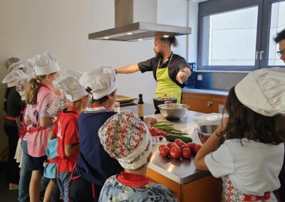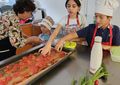 Pour ce premier atelier de la saison, nos p’tits chefs ont plongé dans l’univers coloré et savoureux des tomates. Accompagnés de notre chef cuisinier Christophe Volnin, passionné et généreux, les enfants ont découvert toutes les astuces pour cuisiner ce légume star de l’été.