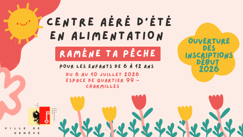 Ramène ta pêche aux Charmilles Nous sommes ravis de vous annoncer en avant première la date de notre centre aéré Ramène ta pêche 2026. On se retrouve du lundi 6 au vendredi 10 juillet du côté des Charmilles, à l’espace de quartier 99 pour une semaine d’activités...